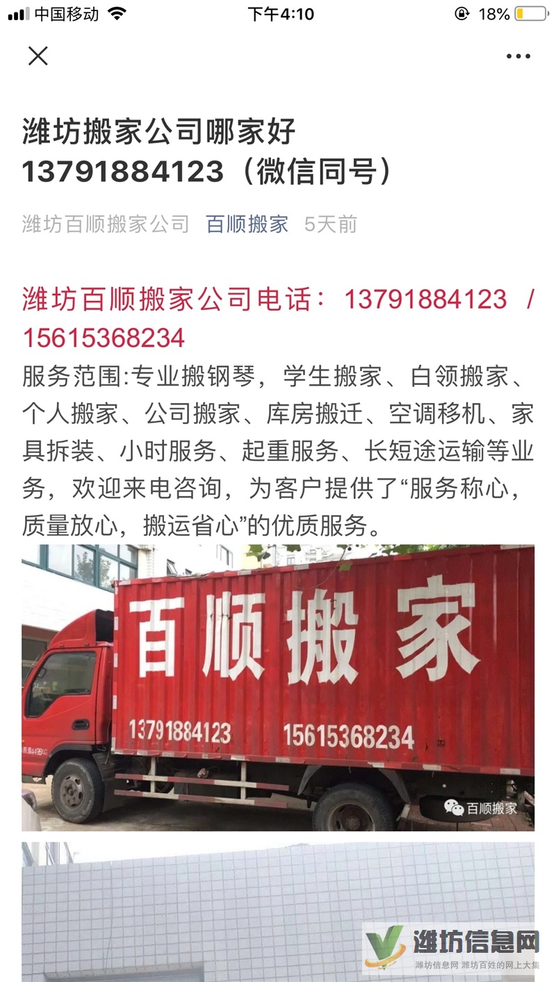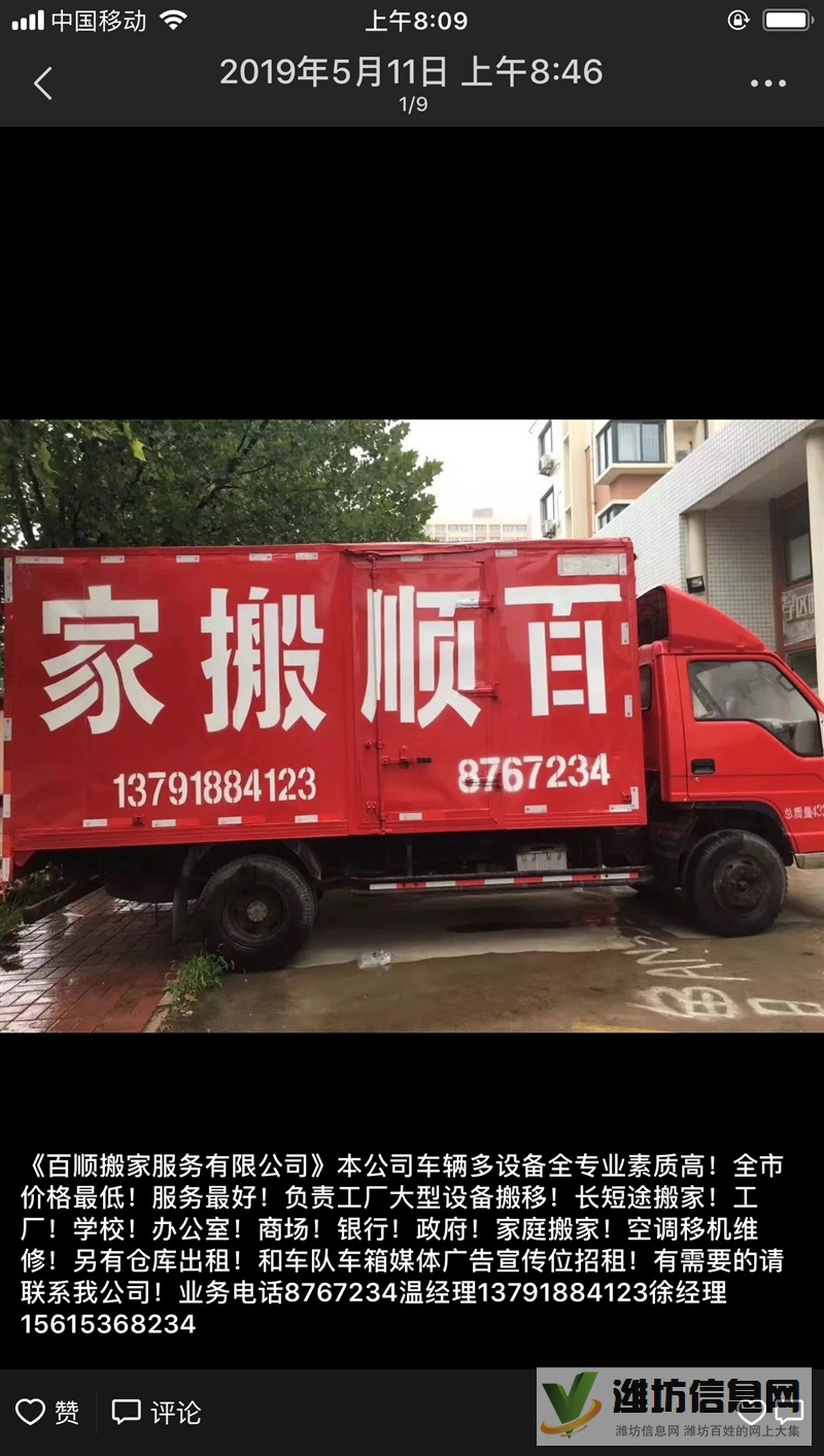 濰坊百順搬家服務有限公司是專業正規的搬家企業服務周到信譽好價格低承接各種搬家業務空調移機安裝
