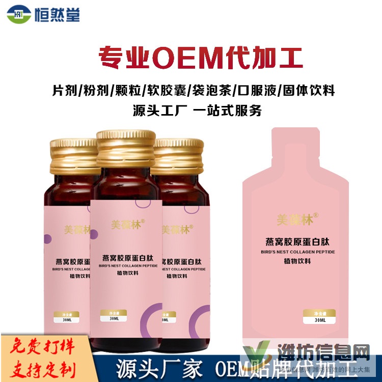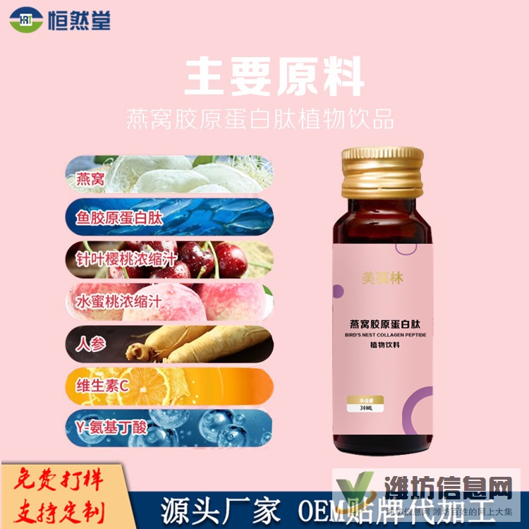 燕窩膠原蛋白肽飲 OEM代加工貼牌定制 配方包裝均可定制