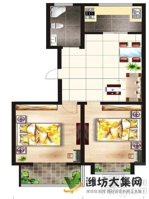 奎文同心園不頂 71平精裝兩室雙氣 28.8萬首付¥28萬