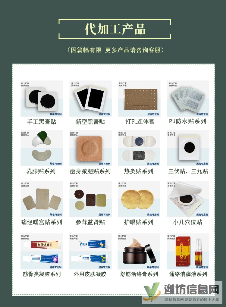 山東朱氏藥業集團有限公司,醫用冷敷貼生產廠家代加工醫用冷敷貼,代加工的價格是由產品的成本決定的,包括產品的包裝盒、包裝袋所用的材料成本、印刷成本、刻板、機器損耗、人工成本、貼膏所用到的原料成本等。有自己品牌、有銷售網絡、有銷售團隊的經銷商朋友,如果選擇和醫用冷敷貼生產廠家代加工合作這種模式,就是一種強強聯合的好模式,醫用冷敷貼生產廠家負責生產高品質產品,客戶負責打開銷路銷售好產品,發揮各自的優勢,強強聯手實現雙贏。